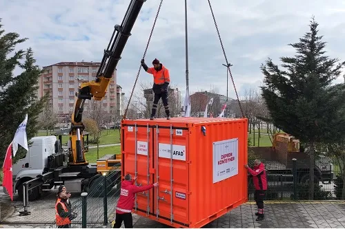 1-7 Mart Deprem Haftası kapsamında; dördüncü konteyner, Ferhatpaşa Mahallesi Prof. Dr. Necmettin Erbakan Parkı'na yerleştirilirken diğer mahalleler için de çalışmalar sürdürülüyor.