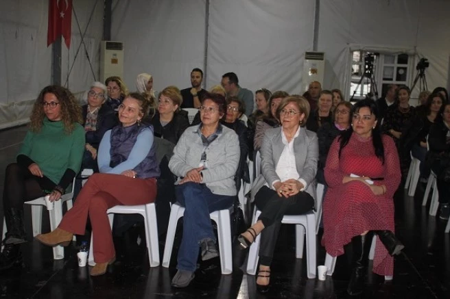 Dr. Zerrin Sönmez daha sonra katılan vatandaşlara bu ürünlerin evde nasıl yapılacağını anlattı. Program söyleşiden çok bir eğitim paneline dönüştü. Katılanlar Dr. Sönmez'in söylediklerini bir bir not etti.
