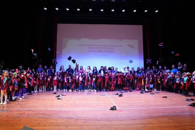 Kartal Belediyesi'ne bağlı 14 kreşin mezuniyet töreni üç bölümde gerçekleştirildi. Her kreşin ayrı ayrı sahne aldığı gösteriler, mezuniyet törenine renk kattı. Öğrencilerin kep atma töreni, veliler ve davetlilerden büyük alkış aldı. Kep atma anı, hem çocuklar hem de veliler için unutulmaz bir anı olarak hafızalarda yer etti. Veliler, çocuklarının mezuniyet sevincine ortak oldu ve bu özel günü coşku içinde kutladı. Törenin sonunda, öğrenciler ve veliler sahnede bol bol fotoğraf çektirerek bu anlamlı günü ölümsüzleştirdi. Mezuniyet töreni, çocukların hayatlarında yeni bir dönemin başlangıcını simgelerken, veliler ve öğretmenler için de gurur verici bir anı oldu.