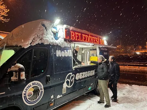 Sabahın erken saatlerinden itibaren Kartal'da özellikle toplu ulaşım araçlarının en yoğun kullanıldığı Kartal Köprüsü ve metro çıkışlarında hizmet veren ekipler, vatandaşlara çorba ve çay ikramında bulundu. Kar yağışına karşı Kartal'da hayatın olumsuz etkilenmemesi için ilçe genelinde çalışmalarına aralıksız devam eden Kartal Belediyesi, bir yandan da ilçenin yoğun olarak kullanılan güzergâhlarında, soğuk ve karlı hava nedeniyle zorluk çeken vatandaşların bir nebze olsun içlerini ısıtmak için, 'Mobil İkram Aracı' ile sıcak çorba ve çay ikramında bulunuyor. Kartal Belediyesi Sosyal Yardım İşleri Müdürlüğü tarafından gerçekleştirişlen sıcak çorba ve çay ikramından faydalanan vatandaşlar ise Kartal Belediye Başkanı Gökhan Yüksel'e ve Kartal Belediyesi çalışanlarına teşekkürlerini iletti. Kartal Belediyesi yetkilileri ise benzer sosyal destek çalışmalarının belirli aralıklarla devam edeceğini ve vatandaşların her zaman yanında olmaya devam edeceklerini belirtti.