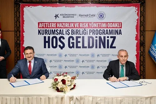 Belediye Binasında düzenlenen programın sonunda Küçükçekmece Belediye Başkanı Kemal Çebi ve İstanbul Aydın Üniversitesi Rektörü Prof. Dr. İbrahim Hakkı Aydın, ‘Afetlere Hazırlık ve Risk Yönetimi Odaklı Kurumsal İş Birliği’ Protokolünü imzaladı.