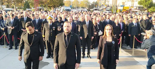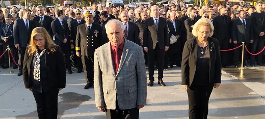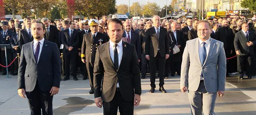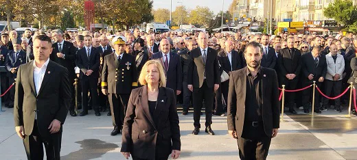 Tören Atatürk Anıtına çelenk sunumu ile başladı. Saatler 09.05 i gösterdiğinde siren eşliğinde saygı duruşu ve istiklal marşının okunmasının ardından duygu dolu anlar yaşandı.