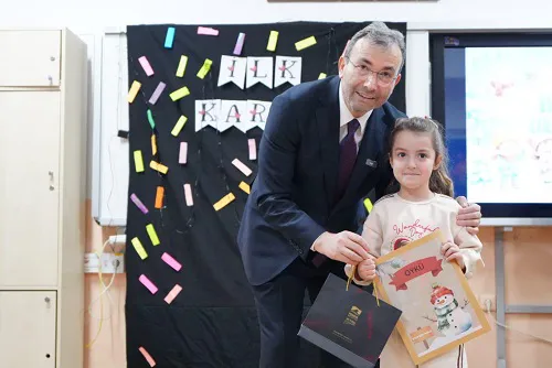 Kaymakam Mehmet Yıldız’la birlikte Kaynarca’da bulunan okuldaki karne törenine katılan Bakan Ahmet Cin, öğretmenler ve öğrencileri tebrik etti. Sınıfları gezerek karneleri öğrencilere takdim eden veren Başkan Ahmet Cin, onlarla sohbet ederek içinde okuma kitabı, yapboz ile tiyatro bileti bulunan hediye çantası verdi. Başkan Ahmet Cin: “Öğretmenleri emeklerinden, öğrencileri ise başarılarından dolayı tebrik ediyorum” diyerek öğrencilere tatilde mutlaka kitap okumaları tavsiyesinde bulundu.