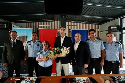 Zabıta Müdürü Murat Özgür Polat ve zabıta çalışanları da Başkan Gökhan Yüksel’e teşekkür ederek, çiçek takdim etti.