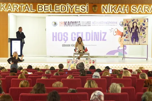 Saygı duruşu ve İstiklal Marşı ile başlayan program açılış konuşmaları ile devam etti. Kartal Belediyesi Kadın ve Aile Hizmetleri Müdürü Deniz Karacan, 25 Kasım’ın kadınların yaşadığı şiddet ve eşitsizliğe karşı ortak mücadelenin simgesi olduğunu belirterek, “Kadına yönelik şiddet yalnızca kadınları değil, tüm toplumu yaralayan bir insan hakları ihlalidir. Sessiz kalmak şiddeti büyütür. Kartal Belediyesi olarak kadınların güçlenmesini destekleyen kurslar, kadın emeği projeleri ve şiddet mağdurlarına sağladığımız psikolojik–hukuki destekle bu mücadelenin her zaman yanındayız. Şiddetsiz bir yaşam mümkündür; bunu dayanışmayla başaracağız.” dedi.