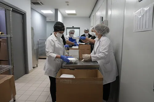 Esentepe Mahallesi’nde bulunan Kartal Belediyesi Neriman-Sami Türkdoğan Aşevi ve Gıda Bankası’nda hazırlanan sahur ve iftar yemeklerinin üretimi, paketlenmesi ve dağıtımı titizlikle sürdürülüyor. Aşevi ekipleri tarafından gerçekleştirilen çalışmalarda sahur ve iftar için hazırlanan yemekler; hijyen kurallarına uygun şekilde üretiliyor, porsiyonlanıyor, vakumlanarak paketleniyor ve ihtiyaç noktalarına ulaştırılıyor.