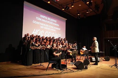 Şef Özgür Doğan yönetimindeki Kartal Belediyesi Türk Halk Müziği (THM) Korosu, halk müziğinin en sevilen eserlerini seslendirerek öğretmenlere duyulan minneti ve sevgiyi türkülerle dile getirdi.