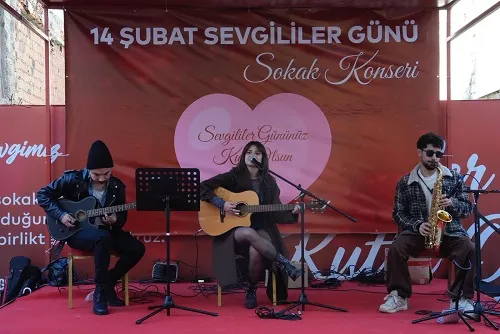 Kutlamaların coşkusu, Ankara Caddesi boyunca sergilenen sanatsal performanslarla doruğa ulaştı. Kartal’ın tarihi caddesinde gerçekleştirilen gösteriler, romantizmin farklı tonlarını katılımcılara yaşattı.Profesyonel dans topluluğunun Ankara Caddesi’nin tarihi dokusunda sergilediği büyüleyici tango ve vals gösterileri, izleyicilerden tam not aldı. Latin ritimlerinin tutkusu ve klasik valsın zarafetiyle süslenen gösterim, aşkın evrensel dilini Kartallılara bir kez daha hatırlattı. Bazı cesur çiftler de sanatçıların davetiyle piste çıkarak dans etmenin keyfini yaşadı.Özel olarak kurulan sahnede ise, sevgi temalı ve romantik şarkılar seslendirildi. Yerel sanatçıların seslendirdiği aşk şarkılarına yüzlerce Kartallı hep bir ağızdan eşlik ederken, cadde adeta dev bir konser alanına dönüştü.