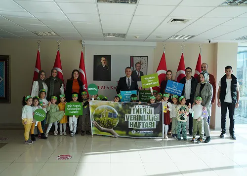 Tuzla Belediyesi, 5-11 Ocak Enerji Verimliliği Haftası kapsamında geleceğe yönelik farkındalık oluşturan anlamlı bir etkinliğe imza attı. Etkinlik kapsamında 20 öğrenci, Tuzla Kaymakamı Ümit Hüseyin Güney ve Tuzla Belediye Başkanı Av. Eren Ali Bingöl’ü makamlarında ziyaret etti. Ziyarette, “Enerjiyi boşa harcamayacağıma söz veriyorum” başlıklı protokol imzalanırken, protokol ile ilçede kamu kurumlarında enerji verimliliğini korumaya yönelik somut adımların atılmaya devam edeceği vurgulandı.