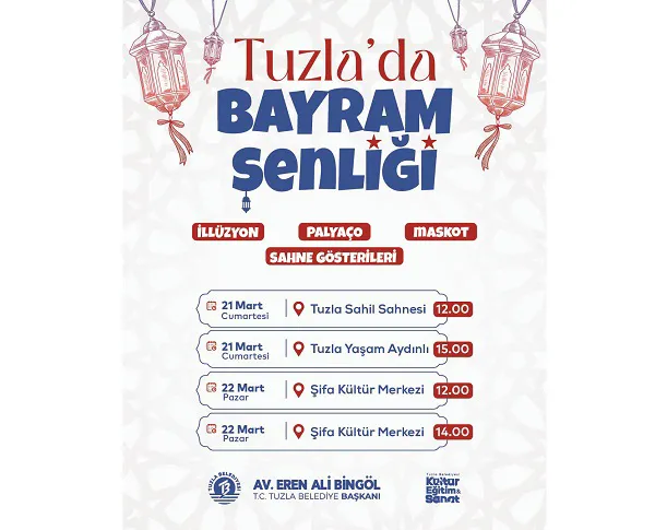 Tuzla Belediye Başkanı Av. Eren Ali Bingöl, etkinliklere ilişkin yaptığı açıklamada, İllüzyon, sahne gösterileri, palyaço, maskot ve daha birçok etkinlik ile Tuzla'nın farklı noktalarında bayram sevincinin hep birlikte yaşanacağına vurgu yaparken, “Tüm komşularımızı bayram etkinliklerimize bekliyoruz.” dedi.