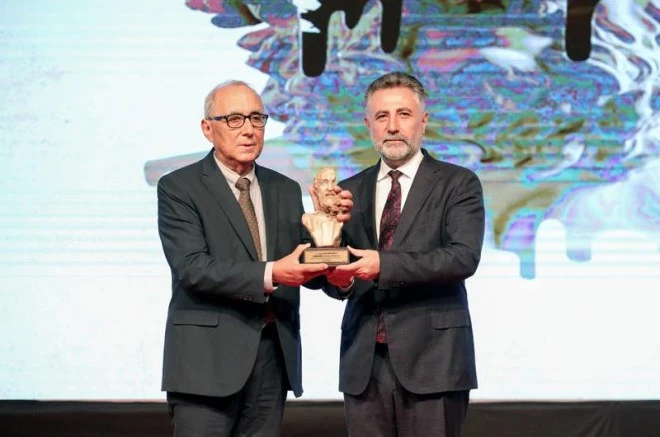 Dünya ve Türkiye edebiyatının, sanatının önemli isimlerini bu yıl ikinci kez Bayraklı’da bir araya getiren Bayraklı Uluslararası Homeros Edebiyat/Sanat Festivali’nde usta Şair Ataol Behramoğlu’nun Cumhuriyetin 100’üncü yılına özel yazdığı ve Erhan Doğan tarafından bestelenen marşın İzmir’deki ilk gösterimi heyecan yarattı. Etkinlikler kapsamında onur konuğu ödülünü almak için sahneye çıkan usta Şair Behramoğlu, konuşmasının sonunda Cumhuriyet’in 100’üncü yılına özel olarak hazırladığı marşı seyircilerle ilk kez paylaştı. Daha sonra ‘Düş Gezginleri Band’ tarafından seslendirilen marşın video klibi seyircilerle paylaşıldı ve salonu dolduranların beğenisini kazanan eser, uzun süre alkışlandı.