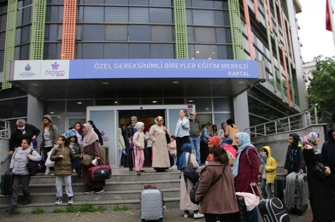 Daha sonra İBB Kartal ÖZGEM (Özel Gereksinimli Bireyler Merkezi) önünden otobüslere binen vatandaşlar kamp alanına ulaştırıldı.