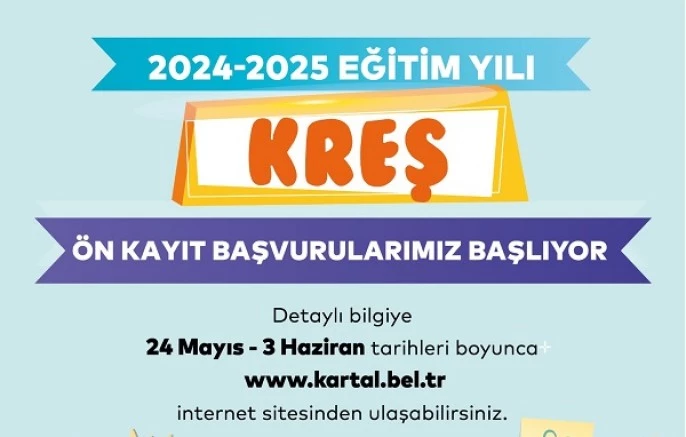Kartal Belediyesi kreşleri, 2024-2025 eğitim öğretim yılına merhaba demeye hazırlanıyor. Kreşlere öğrenci kayıtlarının ön başvuruları, 24 Mayıs-3 Haziran tarihleri arasında Kartal Belediyesi’nin internet sitesi üzerinden online olara