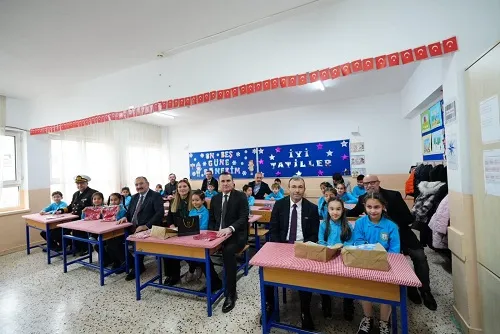 Kaymakam Mehmet Yıldız’la birlikte Kaynarca’da bulunan okuldaki karne törenine katılan Bakan Ahmet Cin, öğretmenler ve öğrencileri tebrik etti. Sınıfları gezerek karneleri öğrencilere takdim eden veren Başkan Ahmet Cin, onlarla sohbet ederek içinde okuma kitabı, yapboz ile tiyatro bileti bulunan hediye çantası verdi. Başkan Ahmet Cin: “Öğretmenleri emeklerinden, öğrencileri ise başarılarından dolayı tebrik ediyorum” diyerek öğrencilere tatilde mutlaka kitap okumaları tavsiyesinde bulundu.