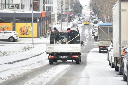 Beylikdüzü’nde etkisini sürdüren kar yağışı sebebiyle tüm birimleriyle teyakkuzda olan Beylikdüzü Belediyesi, ilçe halkının günlük hayatının aksamaması için çalışmalarını sürdürüyor. Bu kapsamda ana arterler, cadde ve sokaklar, yaya yolları, üst geçitler, kamu kurumları çevresi ile hastane ve okul yollarında kar küreme ve tuzlama çalışmaları titizlikle gerçekleştiriliyor. Özellikle gece saatlerinde oluşabilecek buzlanmaya karşı önlemler artırılırken, ilçenin dört bir yanında tuzlama çalışmaları devam ediyor. Olası ihtiyaçlara karşı kolay ulaşılabilir noktalarda tuz stokları oluşturulurken, talep eden site ve kurumlara da tuz desteği sağlanıyor.